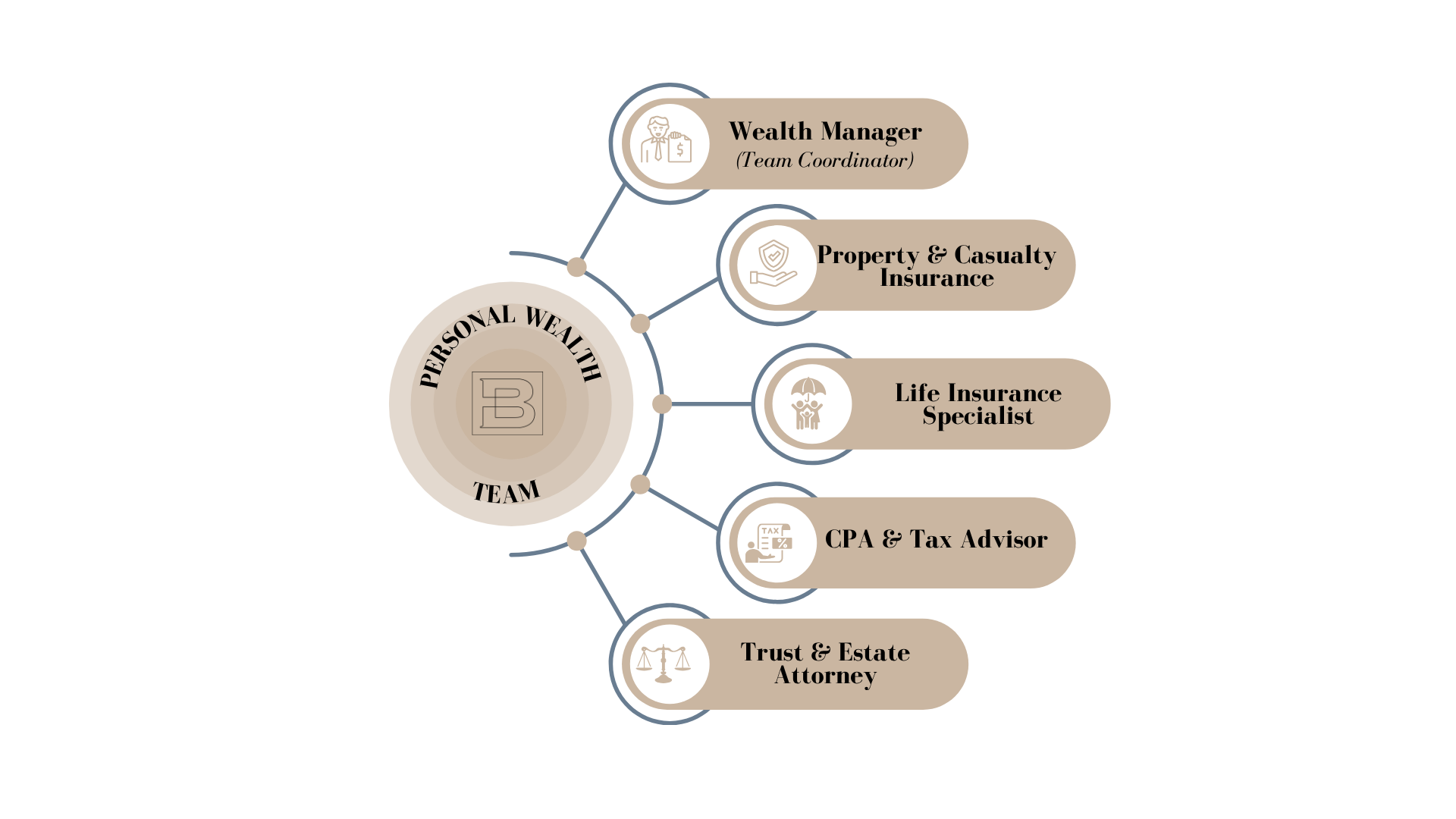 Our strategy includes collaboration with our team of professionals. The Personal Wealth Team has been hand selected to meet the complex needs of our clients.